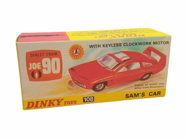 Celebrate a quirky corner of Supermarionation history with the Dinky Toys 108 Sam’s Car Reproduction Box, a beautifully recreated version of the original 1960s packaging for one of Dinky’s most unique Anderson tie-ins. Originally appearing in the cult TV series Joe 90, Sam’s Car was driven by Sam Loover, the affable WIN agent who worked alongside Professor McClaine and young Joe himself.
